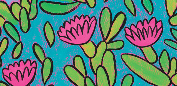 After transferring the outlines to canvas using carbon paper, I filled it all in with vibrant acrylic paint.
